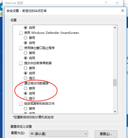 A:工具→Internet選項(xiàng)→安全→自定義級(jí)別→啟用“通過域訪問數(shù)據(jù)源”
